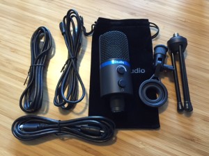 The included mic stand folds nicely so it doesn’t add much more bulk, but you’re not going to fit it and the mic in the included carrying pouch, which is only large enough to contain the iRig Mic Studio with about two of the three necessary cables (Lightning, mini-USB and USB). I’m an Apple guy, so the Lightning and USB cables are the only ones I’d ever need to have handy.